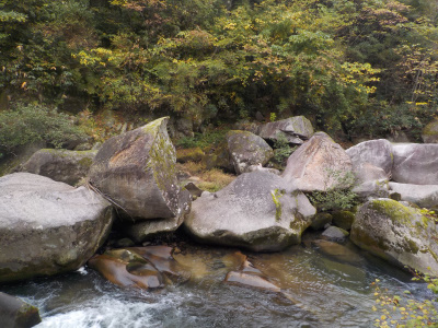 ゴツゴツした巨石が少なくなると、清流が見えてきます。