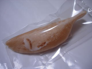 鮎の格好をした最中のようなものの中に、生姜と和三盆糖が入ったお菓子です。